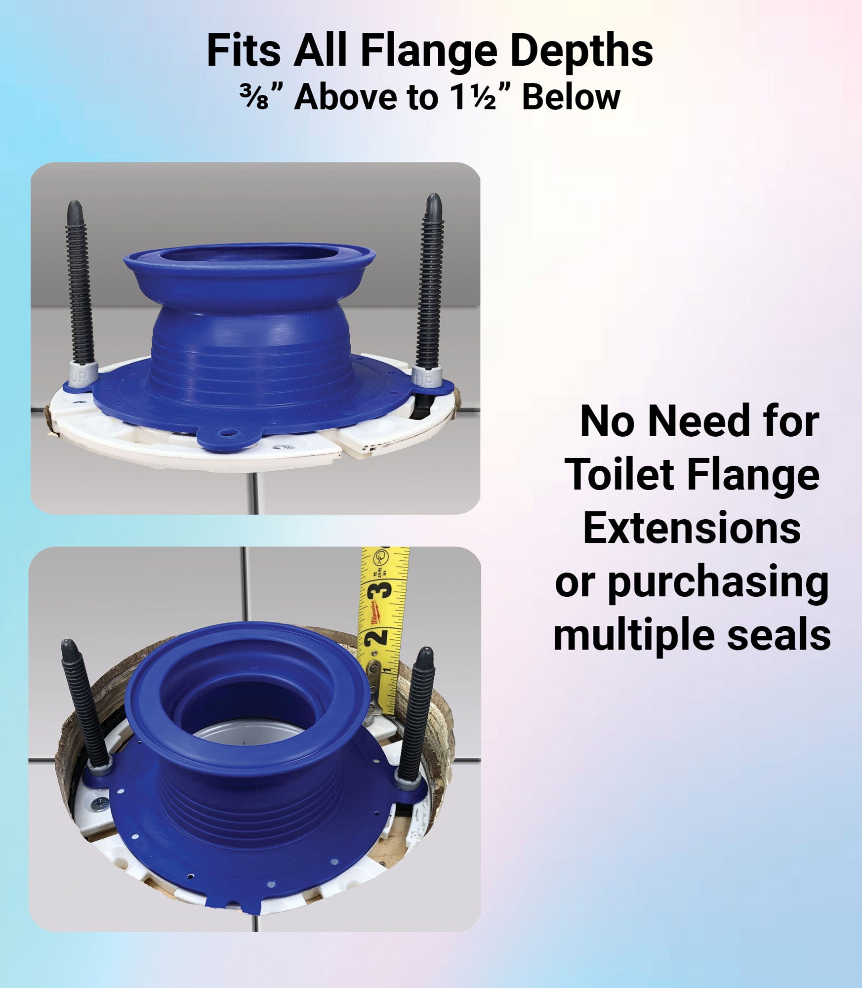 No Guess / Mess | Toilet Seal Ring Self-Adjusts From 3/8 Inch Above to 1.5 Inches Below the Floor. No Toilet Flange Extender Kit Needed. No Messy Wax,