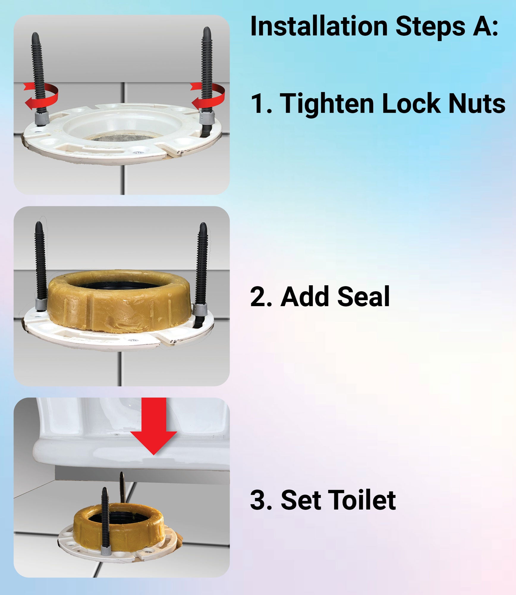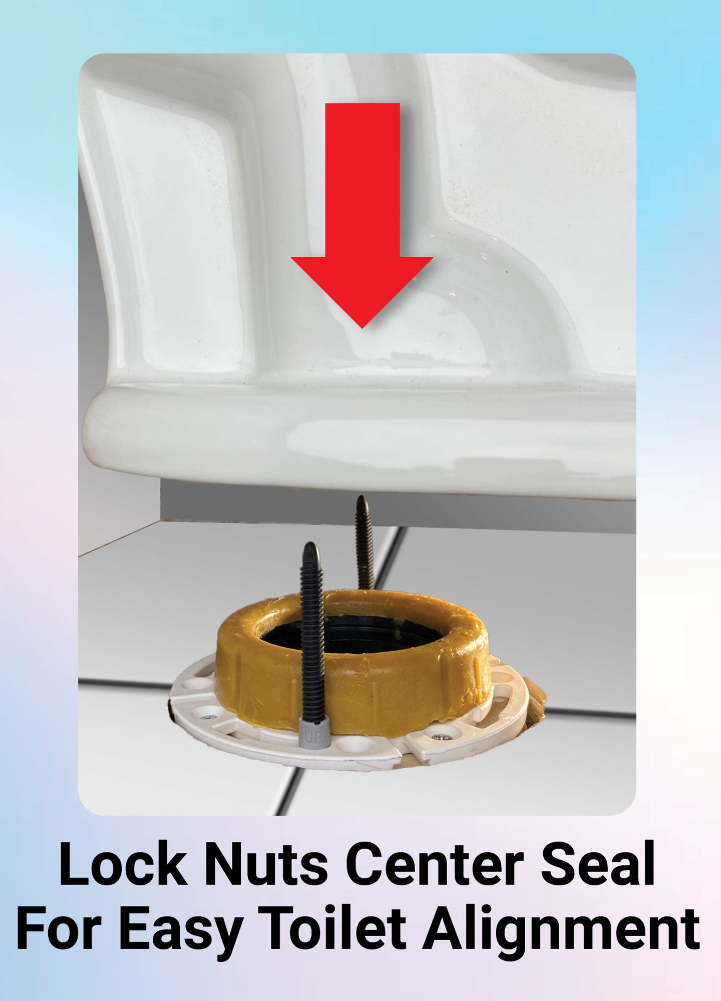EASY INSTALL: Toilet Bolts Lock to the Toilet Flange (Centering the Seal & Toilet). Bullet Tips Guide Bolts Through the Small Toilet Openings.