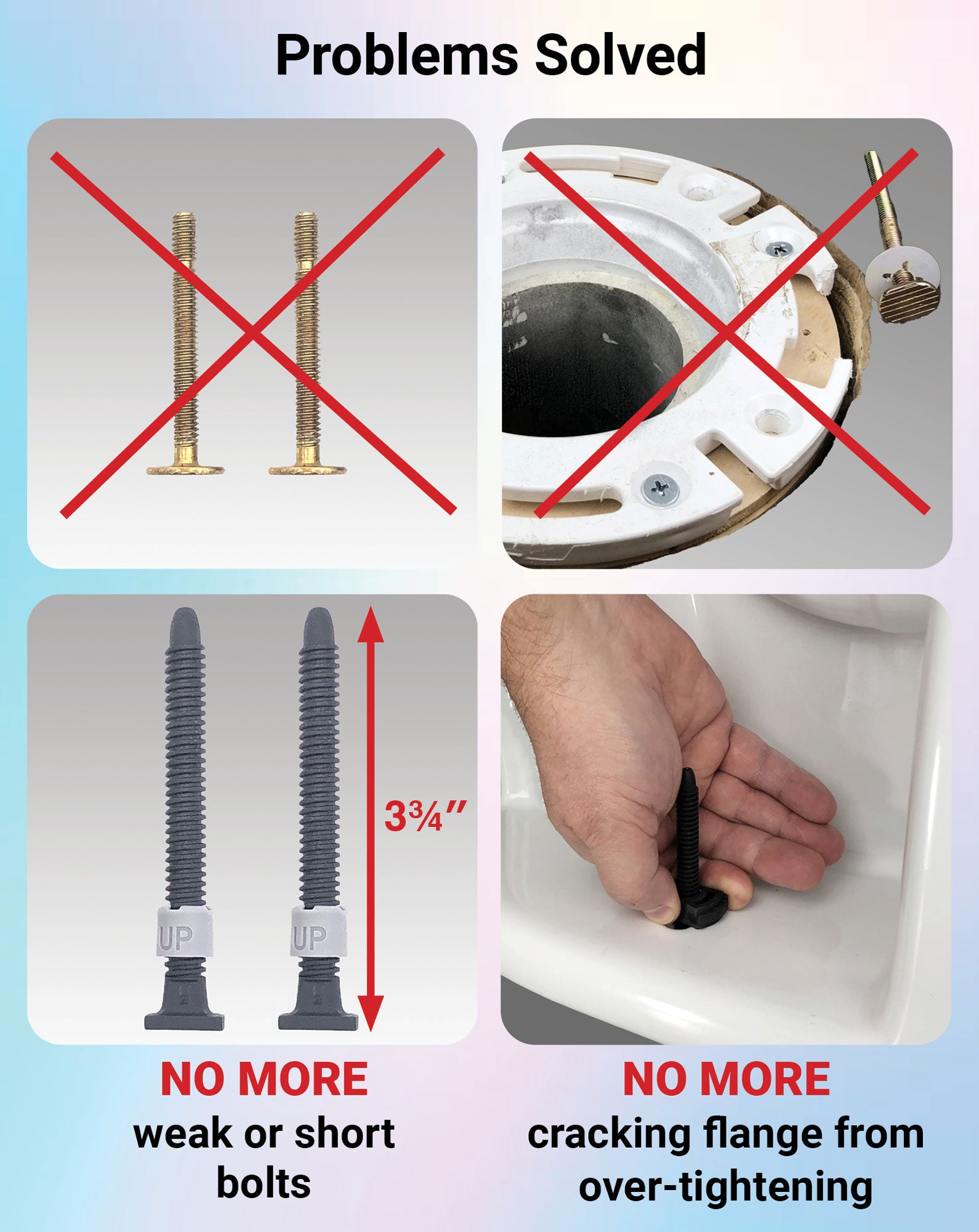 PEACE OF MIND: No Cracked Toilet or Flange with Tool-Free One-N-Done Retaining Nuts. Premium Toilet Bolts Prevent Wobbly Toilets, Cracked Toilets, or Toilet Flanges due to Over or Under Tightening.